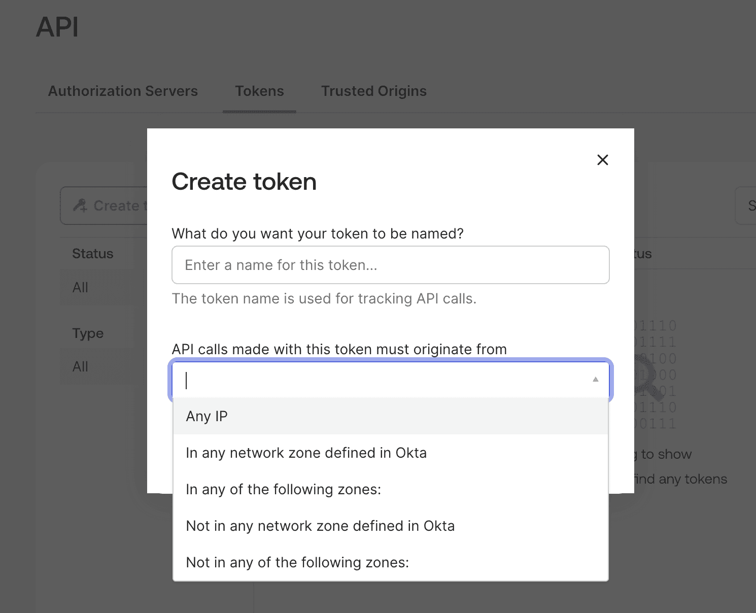 Click "Create Token", provide a descriptive name for easy identification, and configure where API calls may originate. Have your authenticator app ready for step-up verification. Okta will generate a unique API token that you'll use to authenticate the connection.